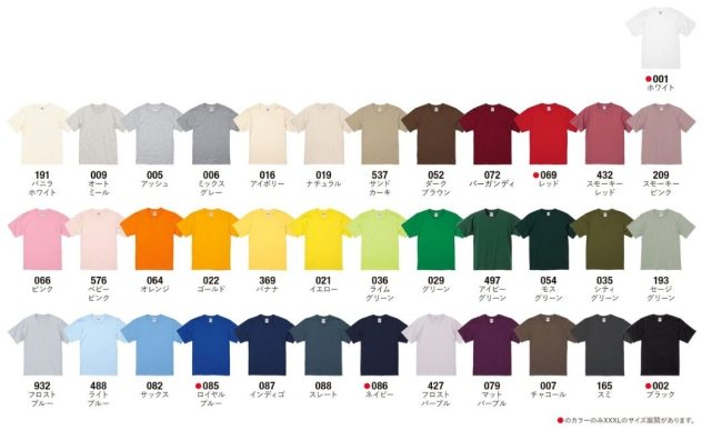 ※ XXXLは、ホワイト、ブラック、レッド、ネービー、ロイヤルブルーのみとなります。